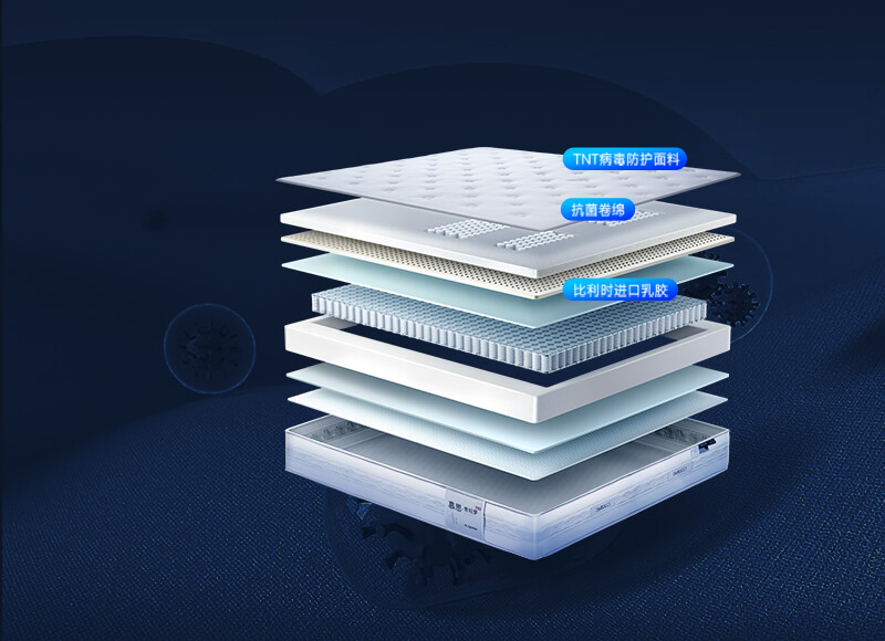 3D空气纤维+比利时进口乳胶+TNT抗病毒面料+抗菌卷绵